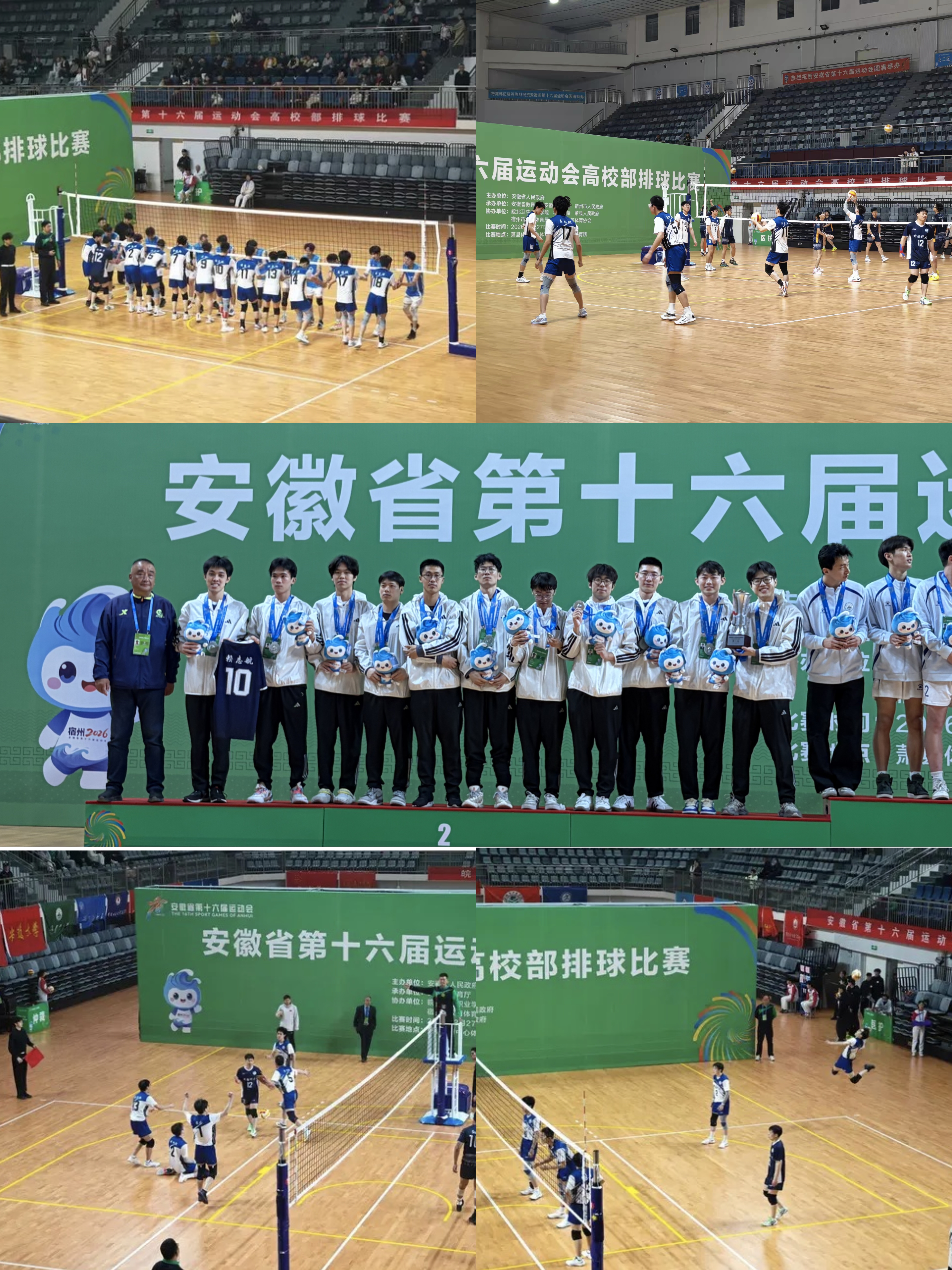 在教练司友志老师的精心指导下,校男排队在本届省运会上表现稳健。小组赛阶段,男排队员配合默契,先后战胜合肥工业大学、皖南医科大学,以小组第一身份强势出线。